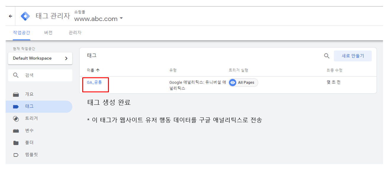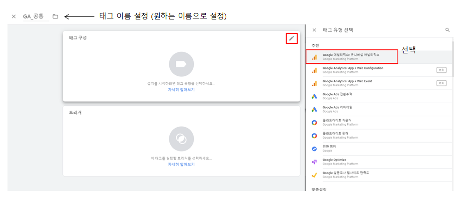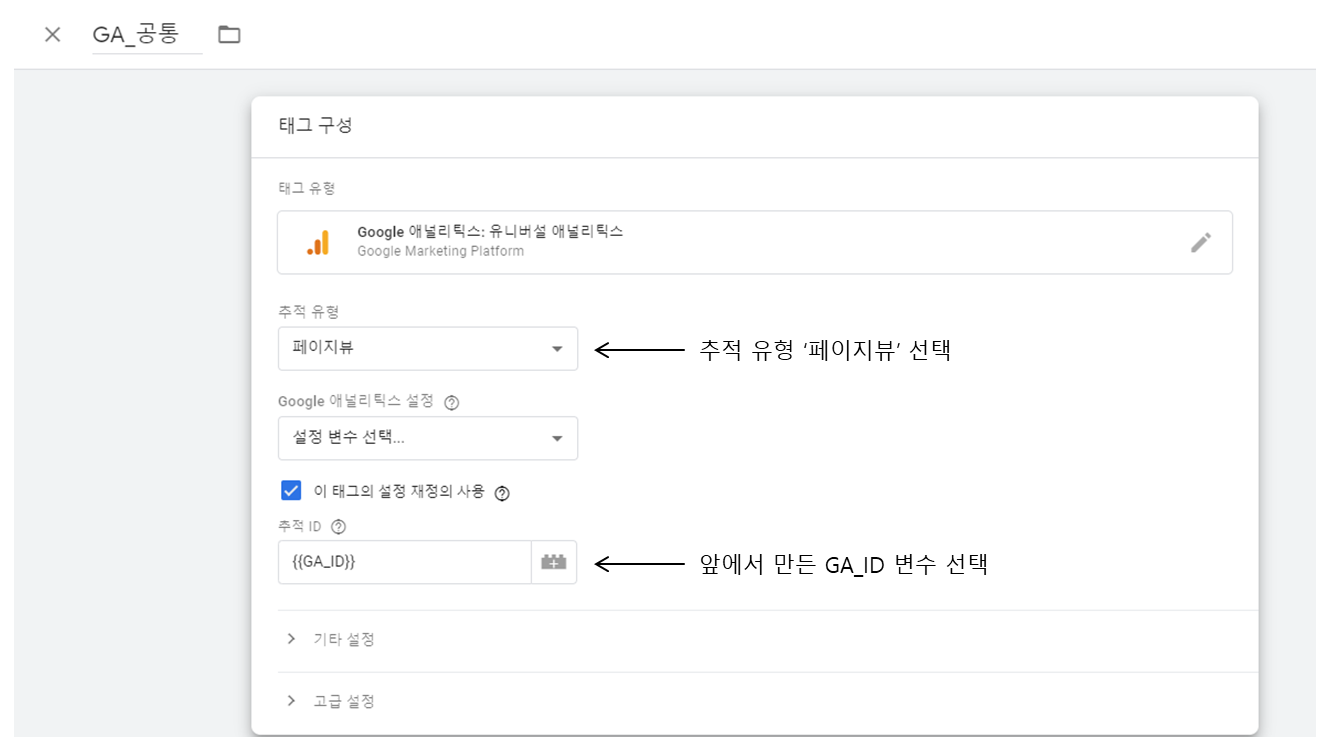 3. GA 공통 트래킹을 위한 태그 생성 (Google Analytics)