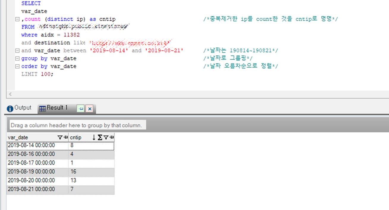 ▶나는.. 날짜별 사람들의 접속량을 알고싶다. (한 ip는 하루에 1번만 카운팅)