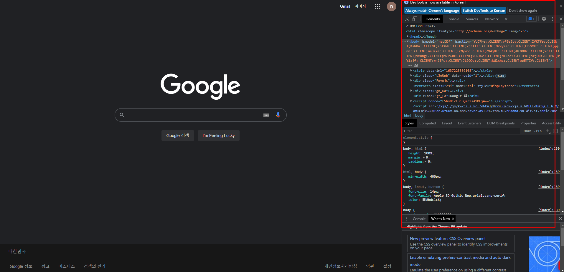 키보드에서 F12 를 누르거나, 마우스 우클릭 후 '검사' 눌러도 되지만